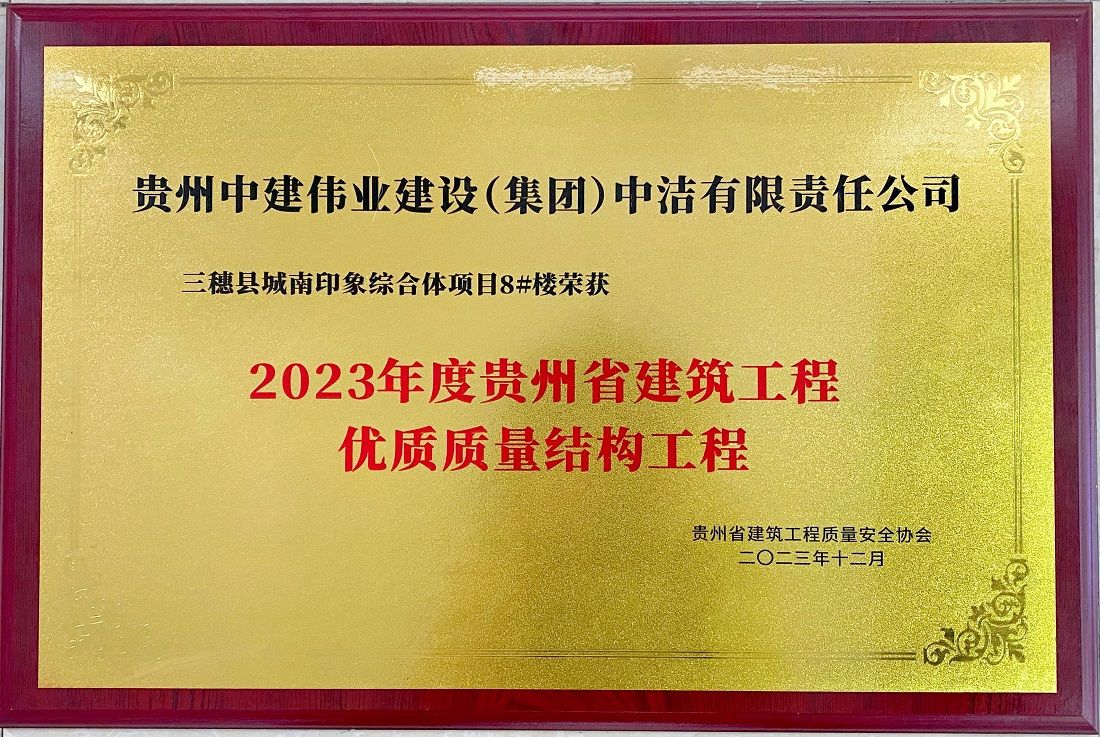 近日,由貴州中建偉業(yè)建設(shè)(集團(tuán))中潔有限責(zé)任公司承建的三穗縣城南印象綜合體項(xiàng)目8#9#10#11#樓,被貴州省建筑工程質(zhì)量安全協(xié)會(huì)評(píng)為“2023年度貴州省房屋市政工程安全文明樣板工地”;三穗縣城南印象綜合體項(xiàng)目8#樓被評(píng)為“2023年度貴州省建筑工程優(yōu)質(zhì)質(zhì)量結(jié)構(gòu)工程”。